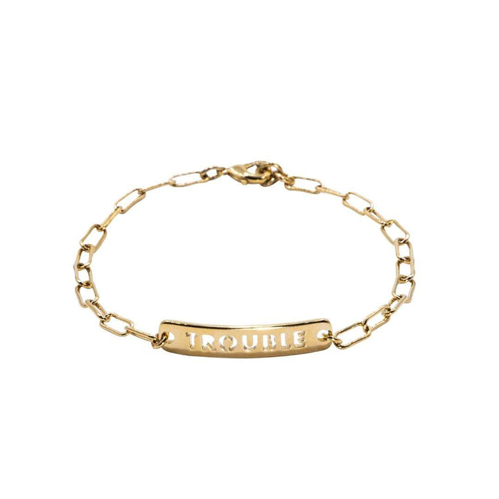 Gold Chain Link Trouble Dog Tag Bracelet: Your Badge of Honor