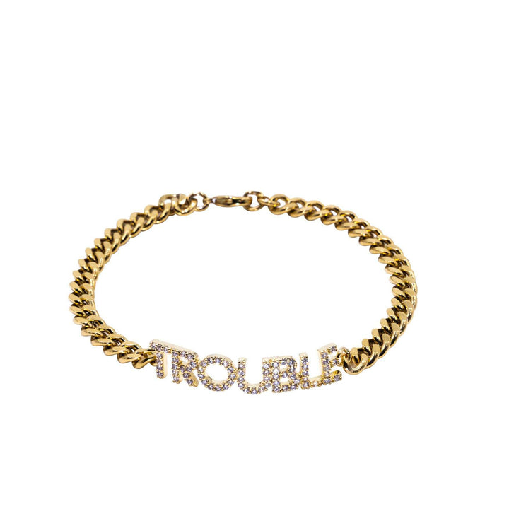 Gold Pavé Trouble Nameplate Bracelet: Sparkling Defiance
