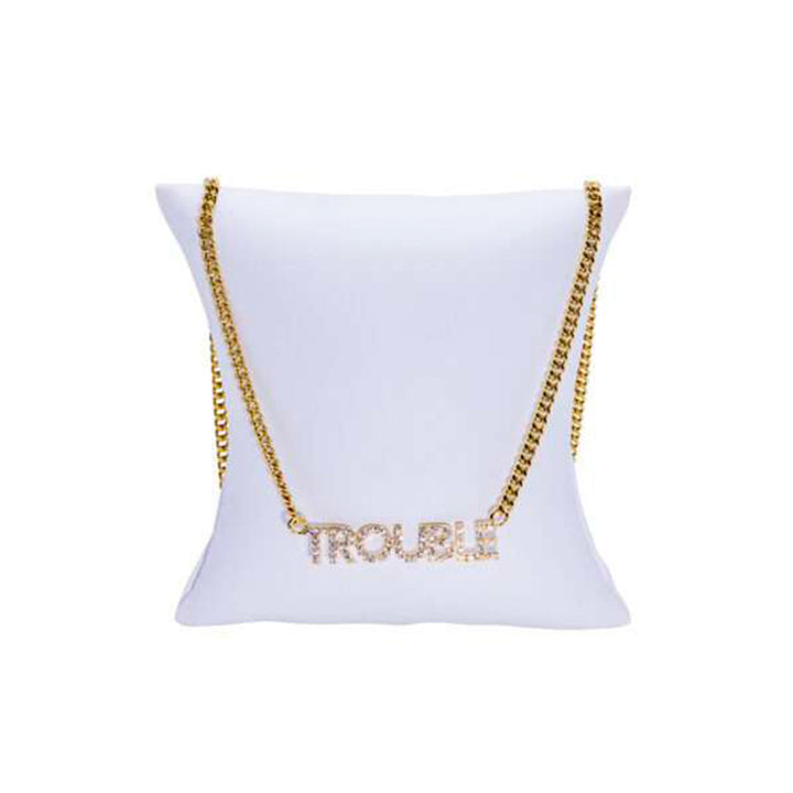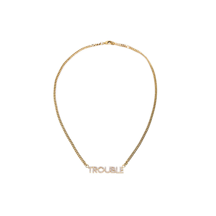 Gold Pavé Trouble Nameplate Necklace: Sparkling Defiance