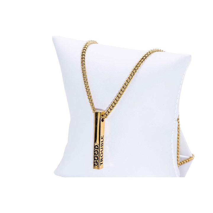 Embrace the multifaceted nature of change with our Good and Trouble Reversible Bar Drop. This ingenious piece embodies the delicate balance between disruption and progress. One side proclaims “Good,” reminding you of your noble intentions. Flip it to reveal “Trouble,” acknowledging that meaningful change often requires rocking the boat. As it dangles, catching the light from every angle, it symbolizes the many perspectives you must consider in your quest for positive change. Wear it as a testament to your ability to see beyond black and white, recognizing that true progress lies in the nuanced space between good and trouble.
